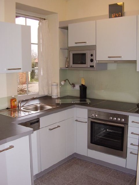 Hochwertige Neff Einbau-Küche mit Ceran-Kochfeld, Microwelle, Dunstabzugshaube, Kühlschrank, Backofen und Geschirrspülmaschine läßt keine Wünsche offen.
