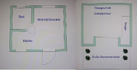 Moderner Komfort auf 2 Etagen  bietet mit ca.45 qm Wohnfläche genügend Platz für 2 Personen und ist komplett ausgestattet mit Geschirr, Hand & Badetüchern sowie Bettwäsche.